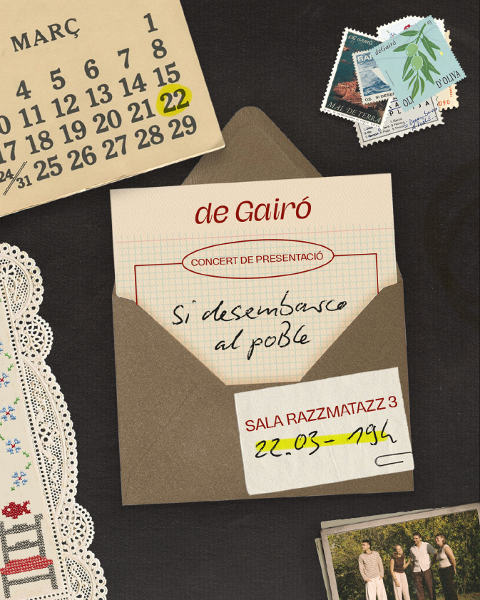 De Gairó presentem el nostre primer treball discogràfic, "Si desembarco al poble", a la sala 3 de Razzmatazz. Aquest nou àlbum consta de sis cançons: quatre composicions pròpies i dues havaneres clàssiques, totes interpretades a la nostra manera. El concert consistirà en la presentació de les nostres cançons, però també voldrà ser com una cantada d’havaneres d’una festa major. Una oportunitat per descobrir com entenem nosaltres les havaneres: respectant-ne l’essència, però portant-les al nostre terreny, amb influències de diferents estils, i una mirada fresca i actual. Una cita imprescindible per portar les havaneres a un nou escenari, però amb el mateix esperit.
